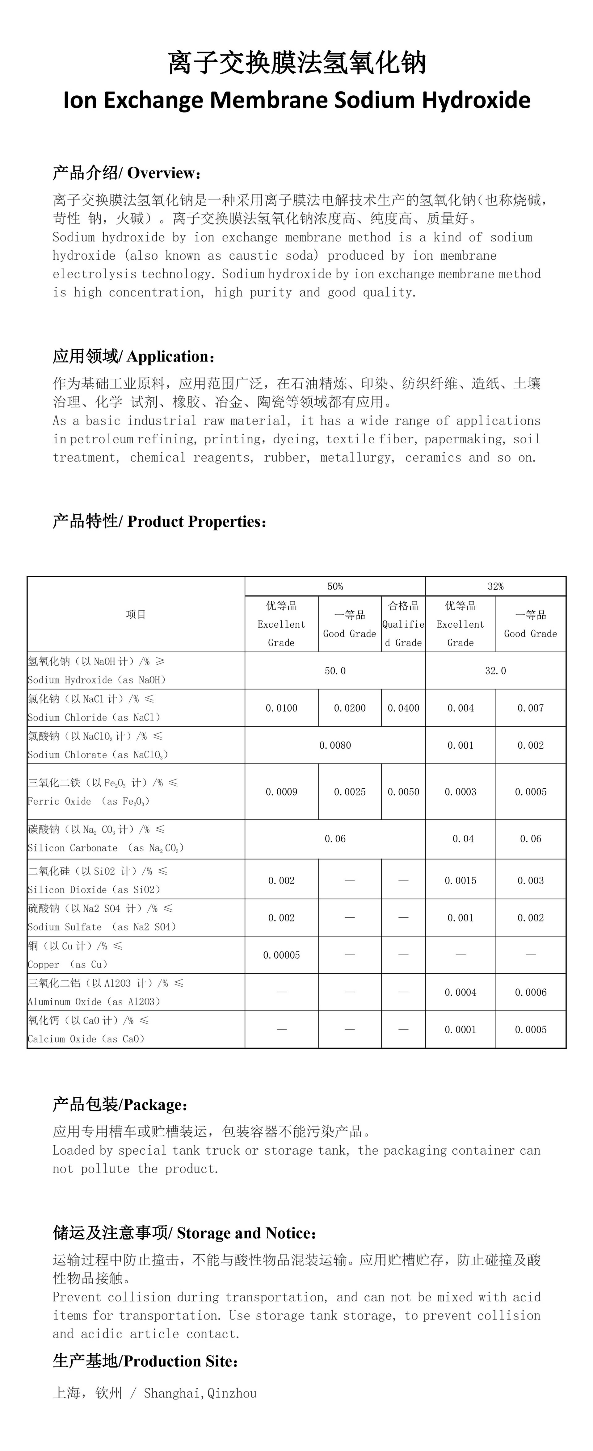 是一种采用离子膜法电解技术生产的氢氧化钠(也称烧碱,苛性 钠,火碱)。离子交换膜法氢氧化钠浓度高、纯度高、质量好。