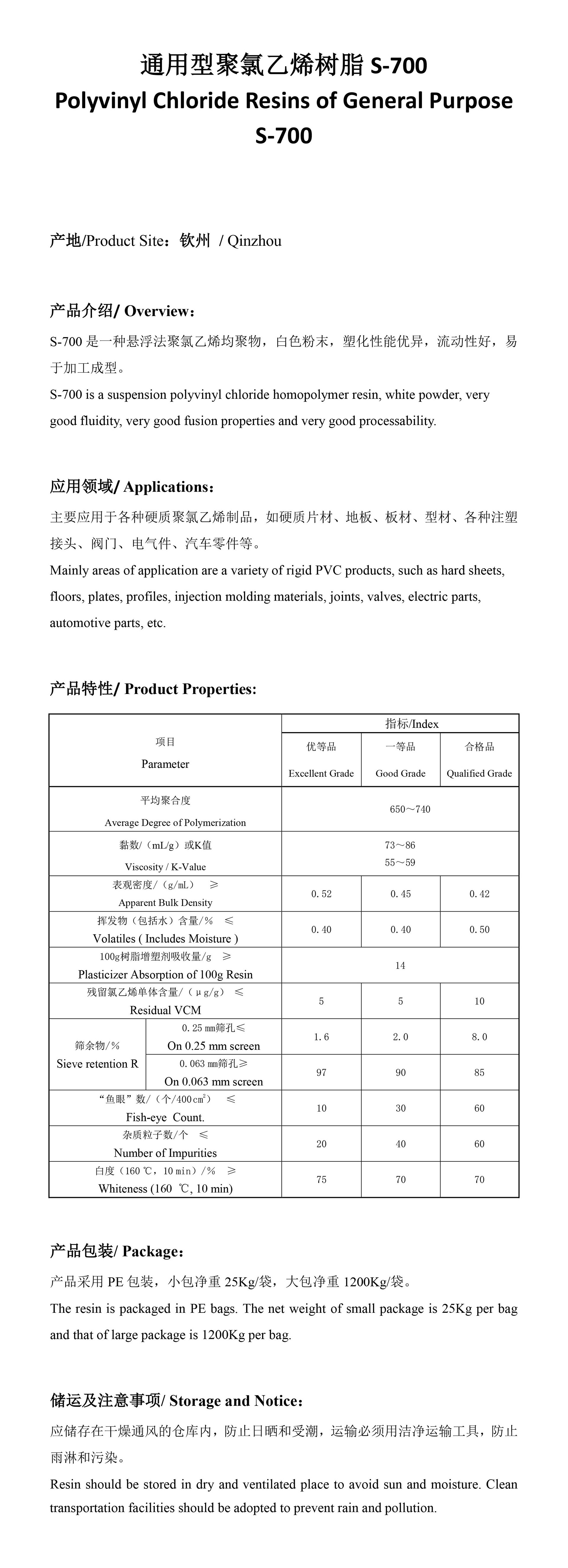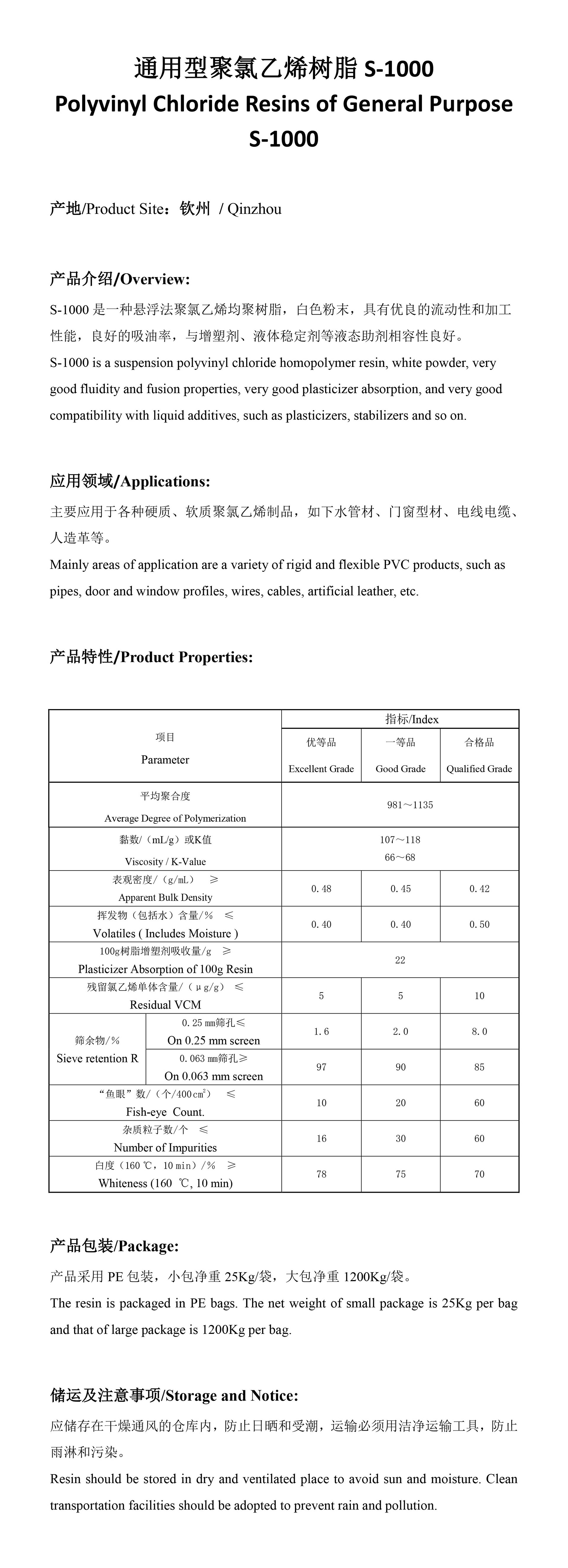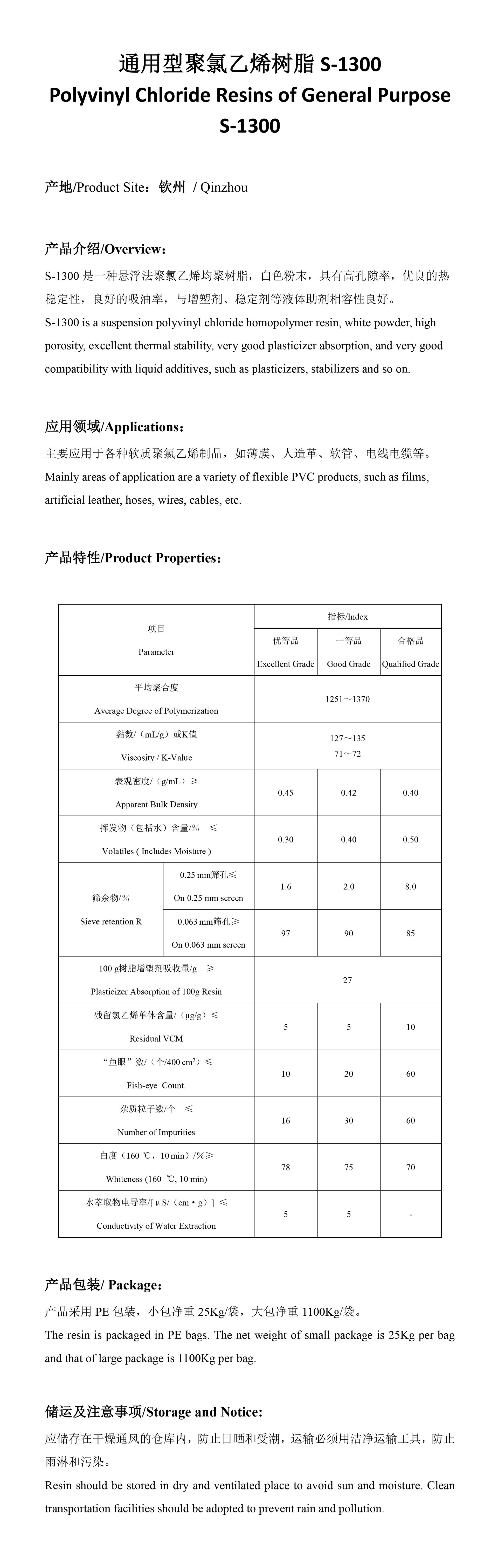 是一种悬浮法聚氯乙烯均聚树脂,白色粉末,具有高孔隙率,优良的热稳定性,良好的吸油率,与增塑剂、稳定剂等液体助剂相容性良好。
