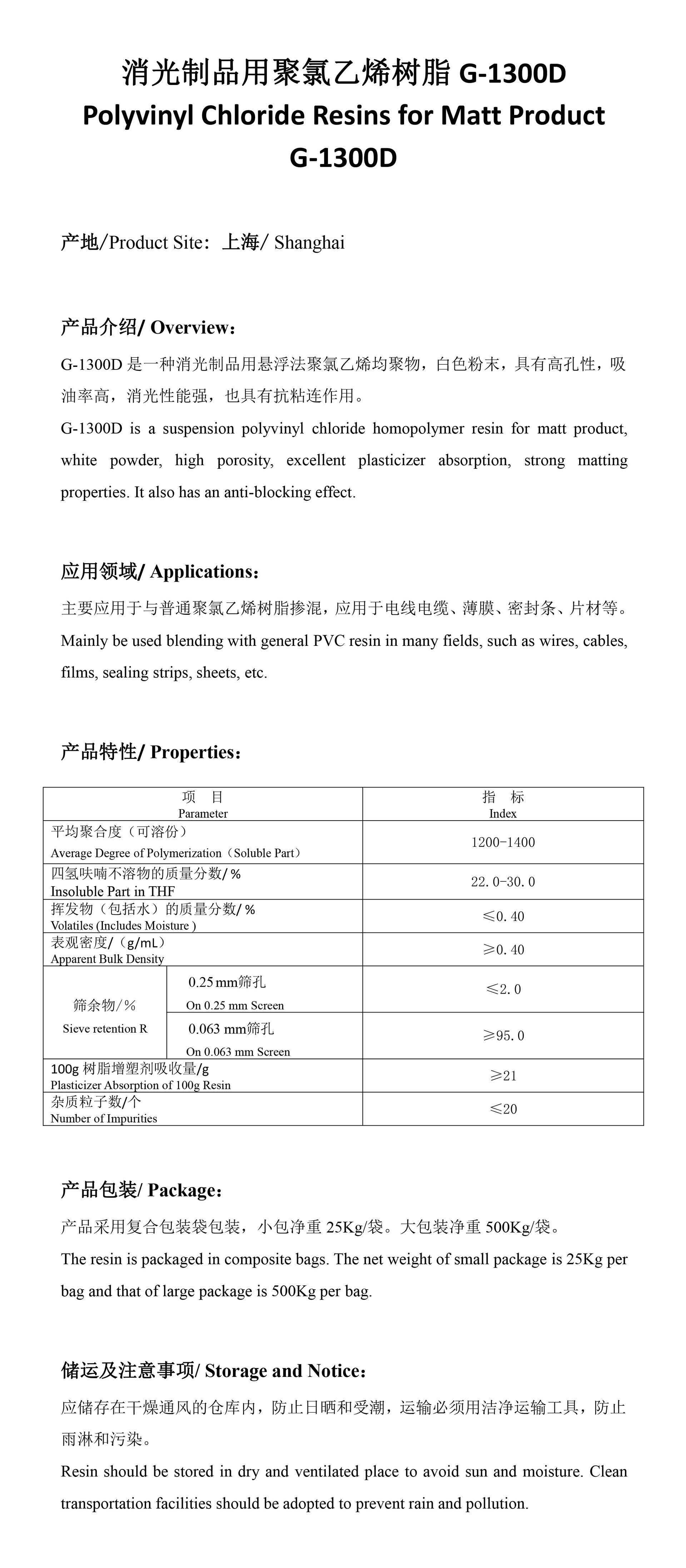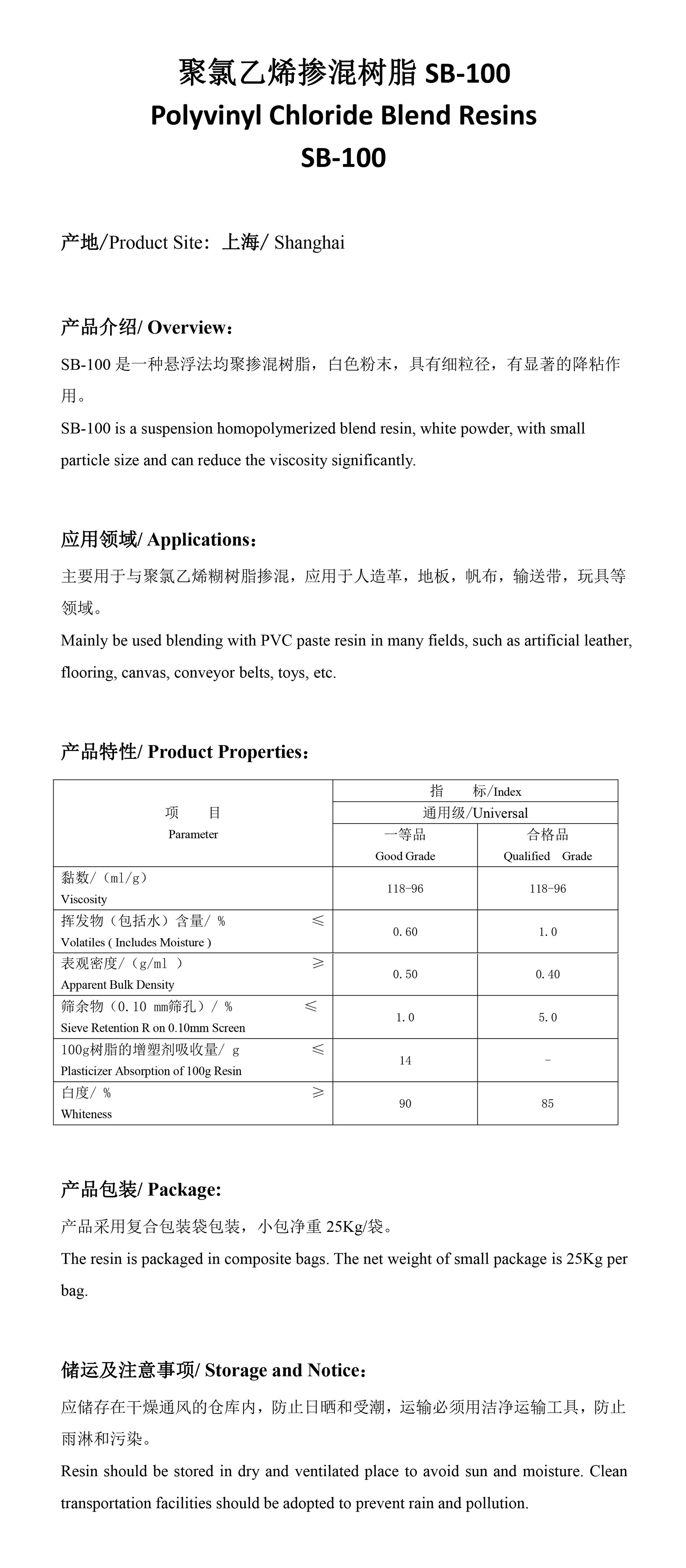 是一种悬浮法均聚掺混树脂,白色粉末,具有细粒径,优良的粒径分布,有显著的降粘作用。