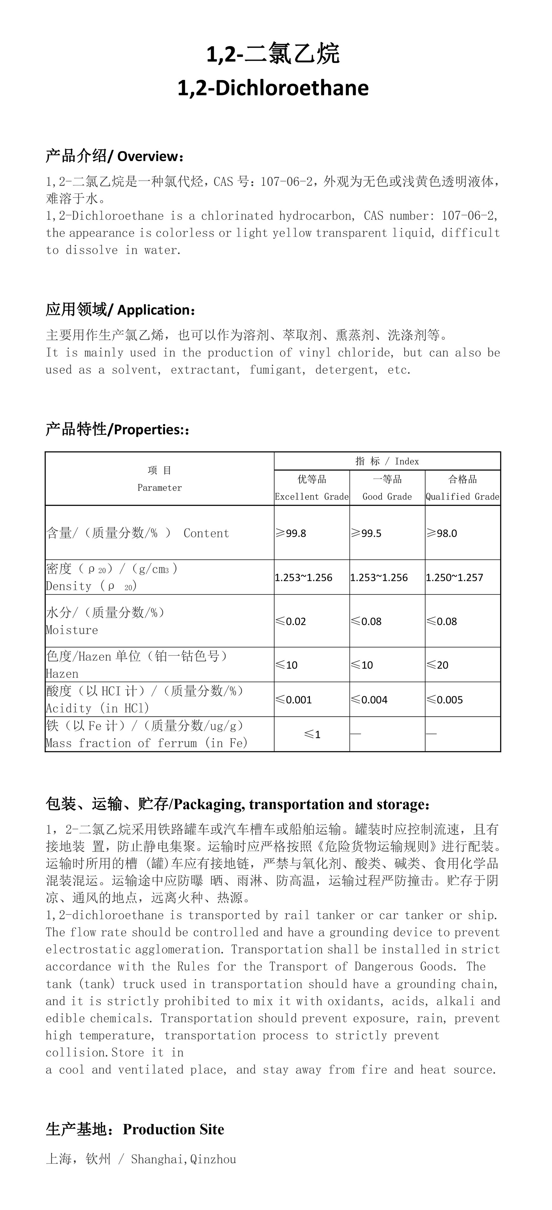 是一种氯代烃,CAS号:107-06-2,外观为无色或浅黄色透明液体,难溶于水。